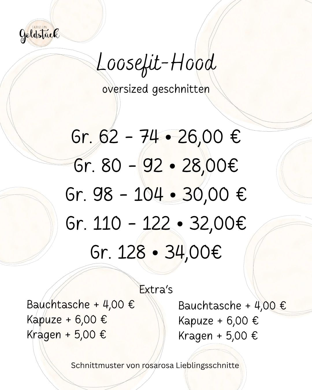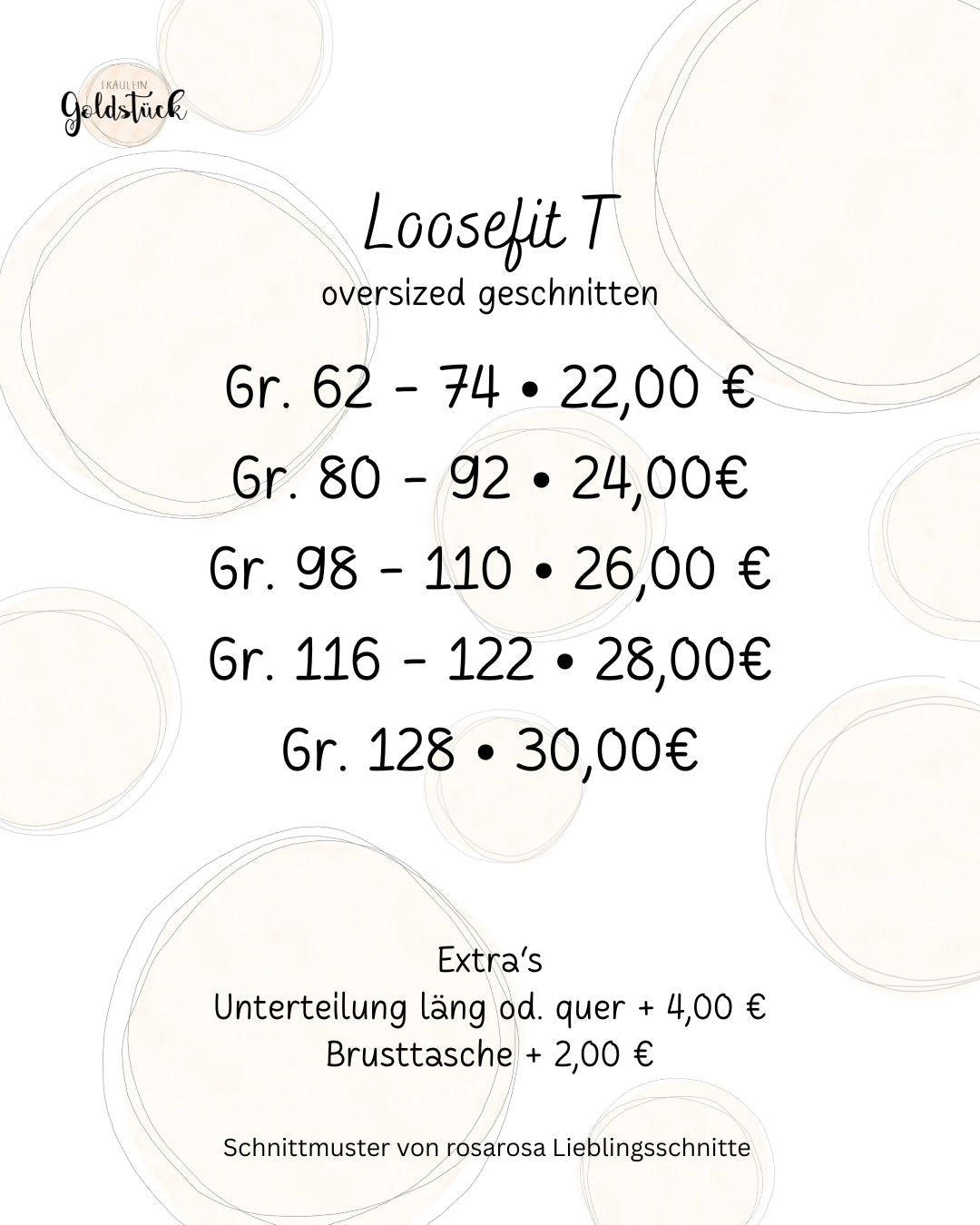 Das freut mich sehr, dass ich für dich nähen darf. Schreib mir eine E-Mail an fraeulein.goldstueck@gmail.com und ich berate dich gerne bzgl. Schnitte, Stoffe und Größe.