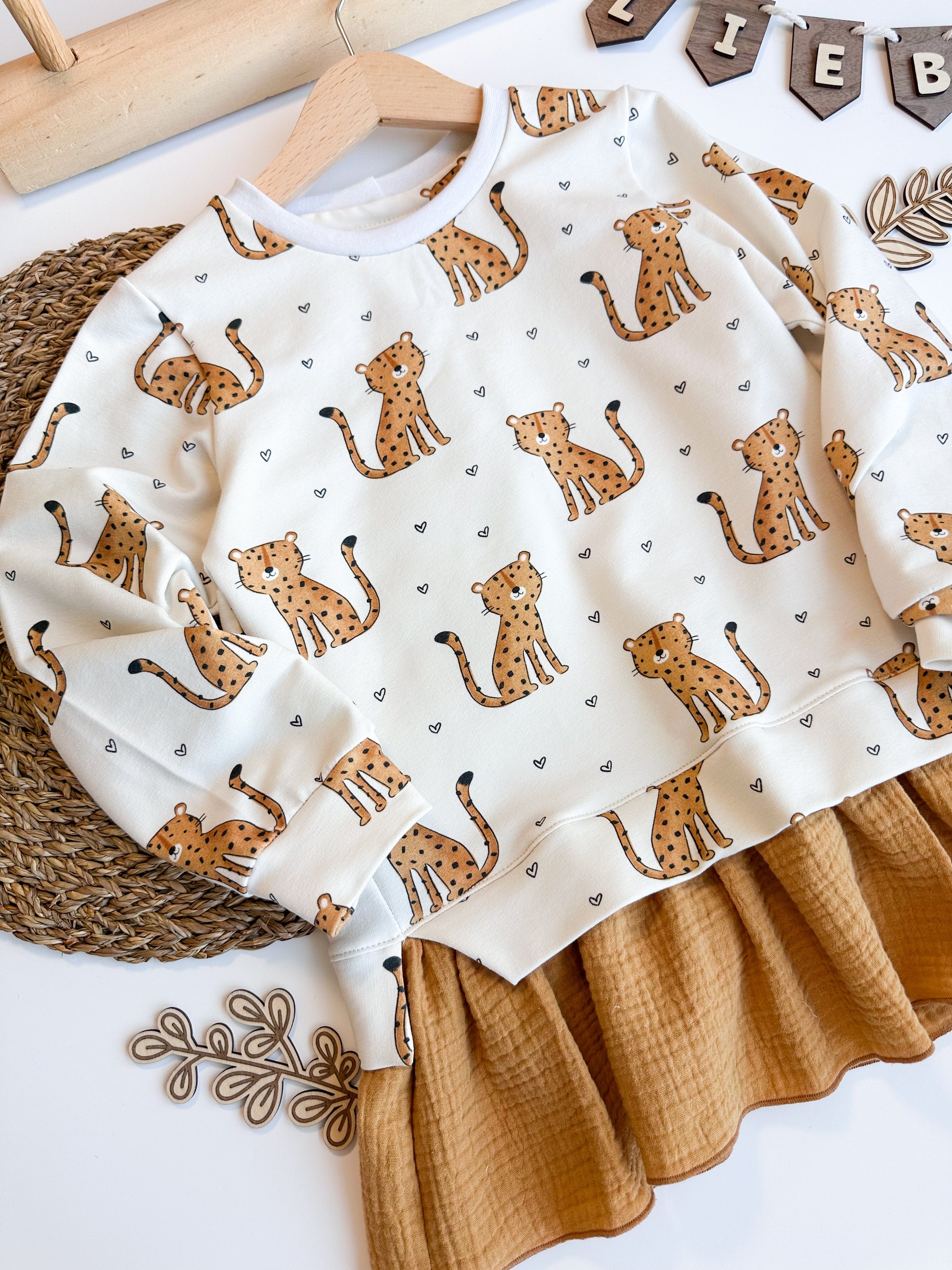 Oberteil ist aus Waffeljersey genäht, das Rockteil aus Musselin.