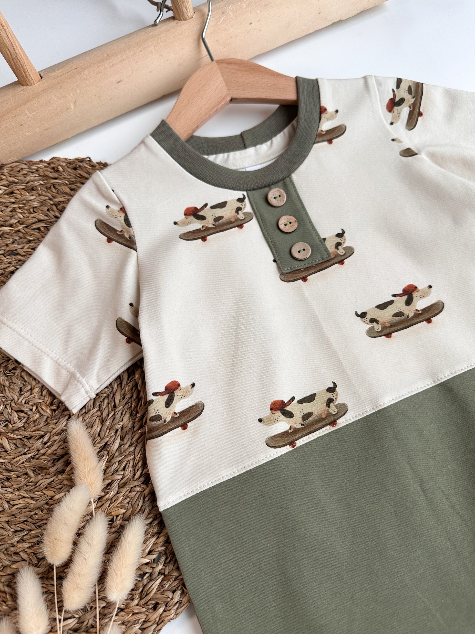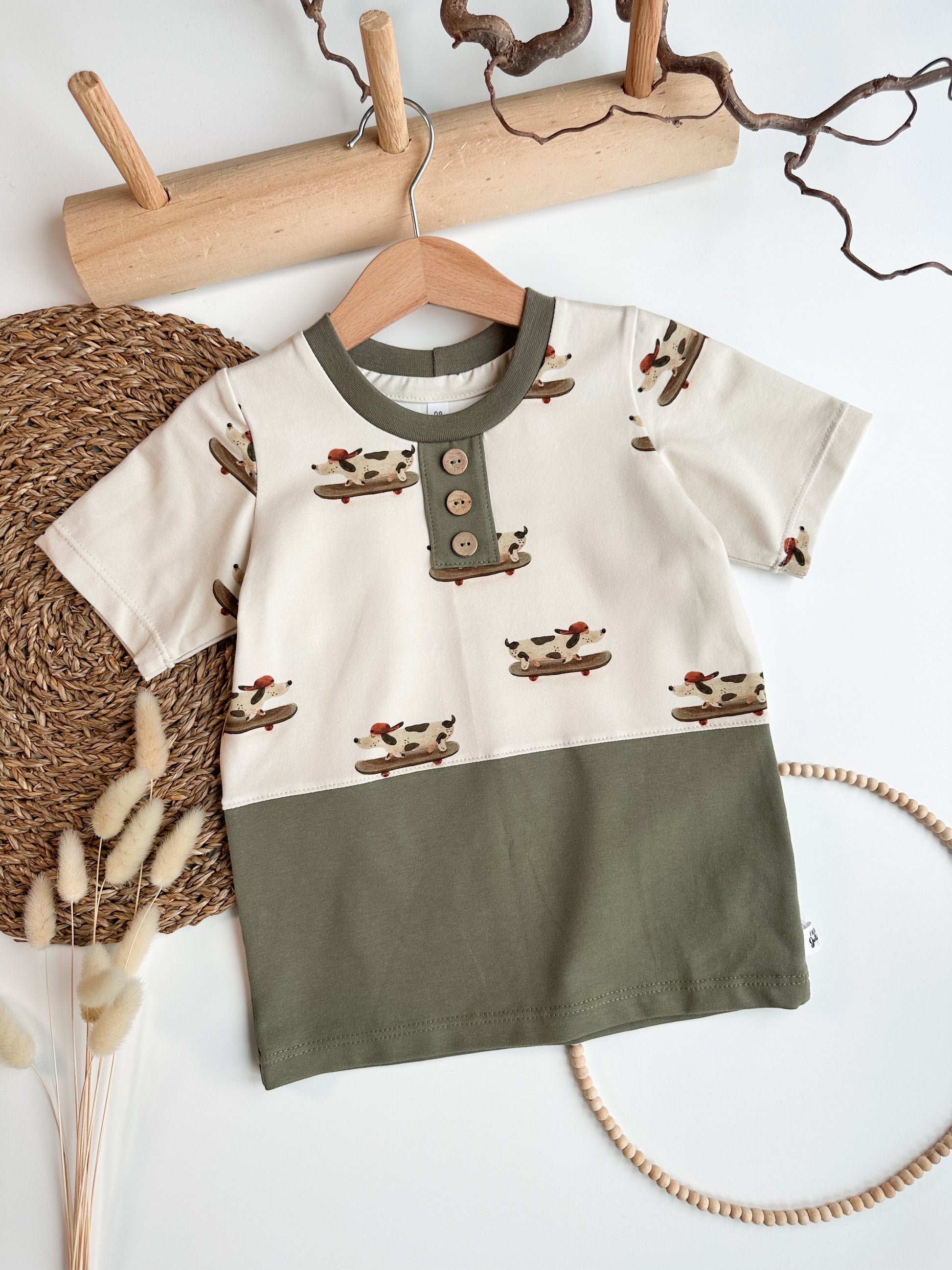 Cooles T-Shirt mit Unterteilung und Fake-Knopfleiste