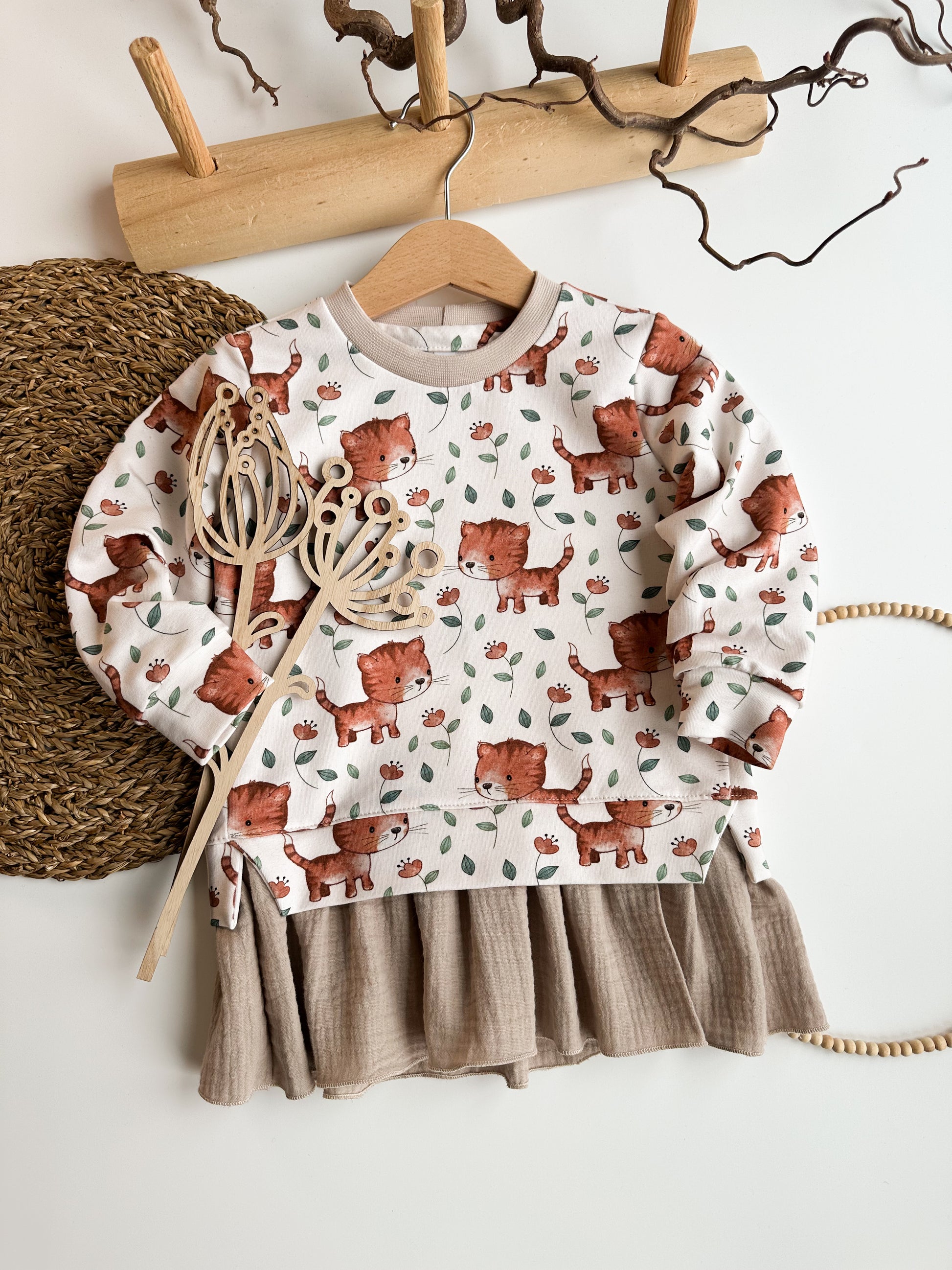 Alle Knöpfe am Kleidungsstück werden von mir ordnungsgemäß mit der Nähmaschine angenäht und verriegelt. Es kann trotzdem vorkommen, dass sich Knöpfe nach starker Belastung lösen. Dies stellt eine Verschluckungsgefahr dar sollte sich dein Kind diesen in den Mund stecken.