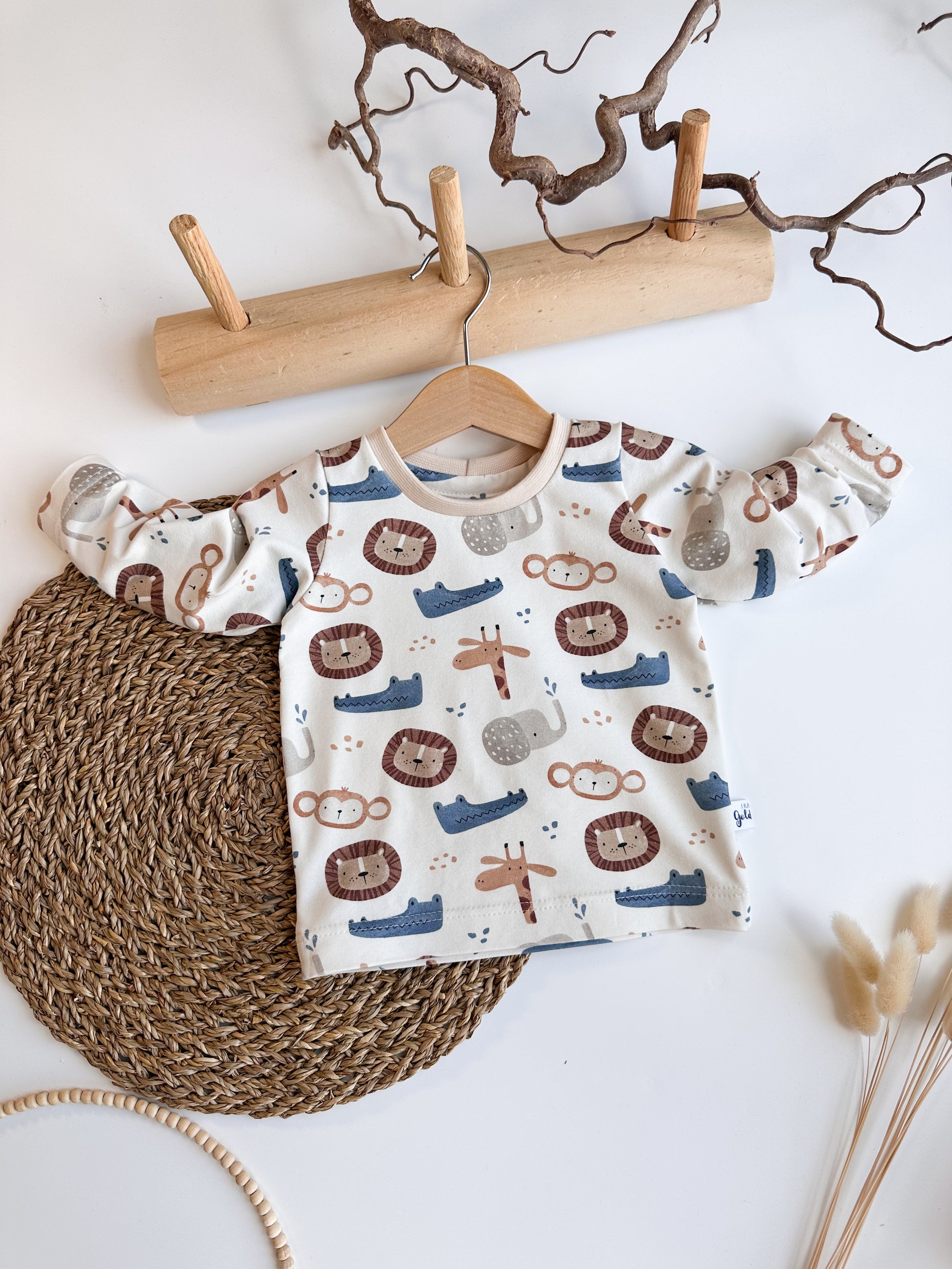 Alle Knöpfe am Kleidungsstück werden von mir ordnungsgemäß mit der Nähmaschine angenäht und verriegelt. Es kann trotzdem vorkommen, dass sich Knöpfe nach starker Belastung lösen. Dies stellt eine Verschluckungsgefahr dar sollte sich dein Kind diesen in den Mund stecken.