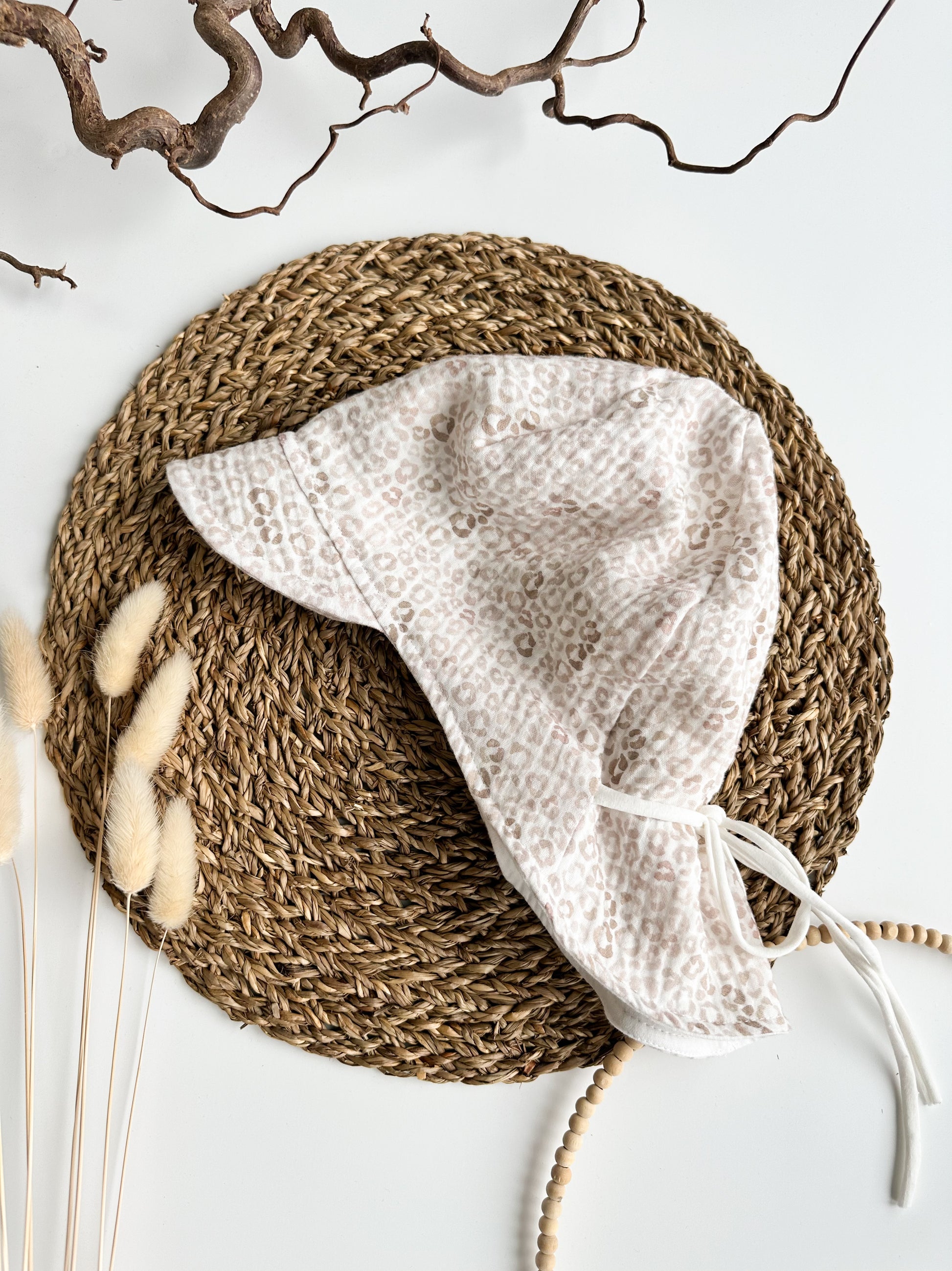 Leichter Musselinsommerhut mit schönem Aquarell Leomuster