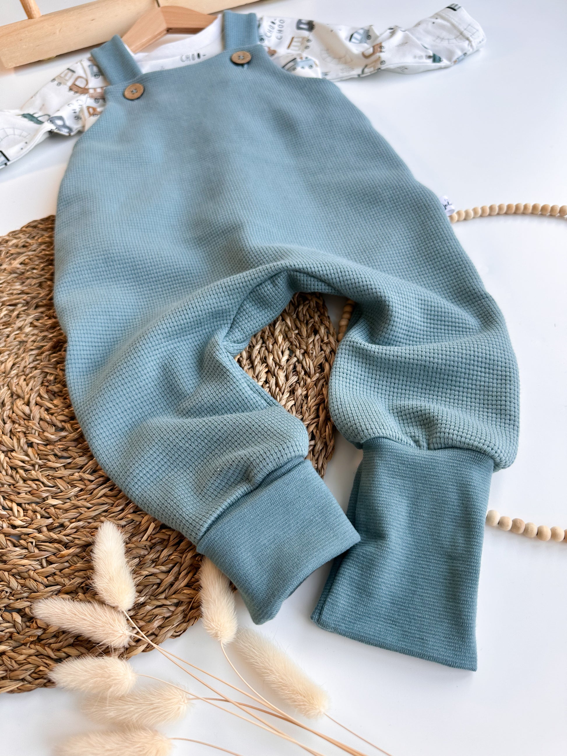 Alle Knöpfe am Kleidungsstück werden von mir ordnungsgemäß mit der Nähmaschine angenäht und verriegelt. Es kann trotzdem vorkommen, dass sich Knöpfe nach starker Belastung lösen. Dies stellt eine Verschluckungsgefahr dar sollte sich dein Kind diesen in den Mund stecken.