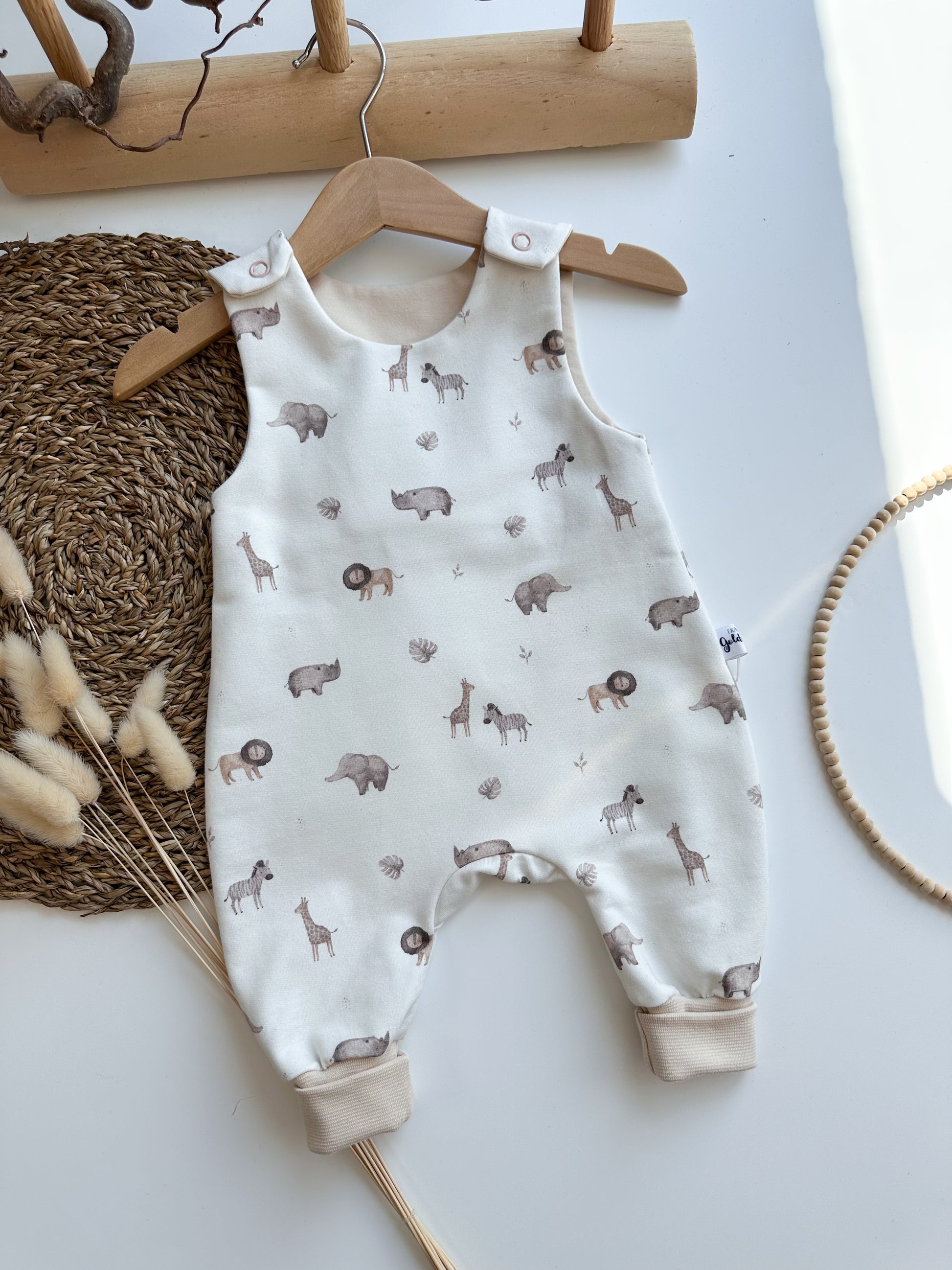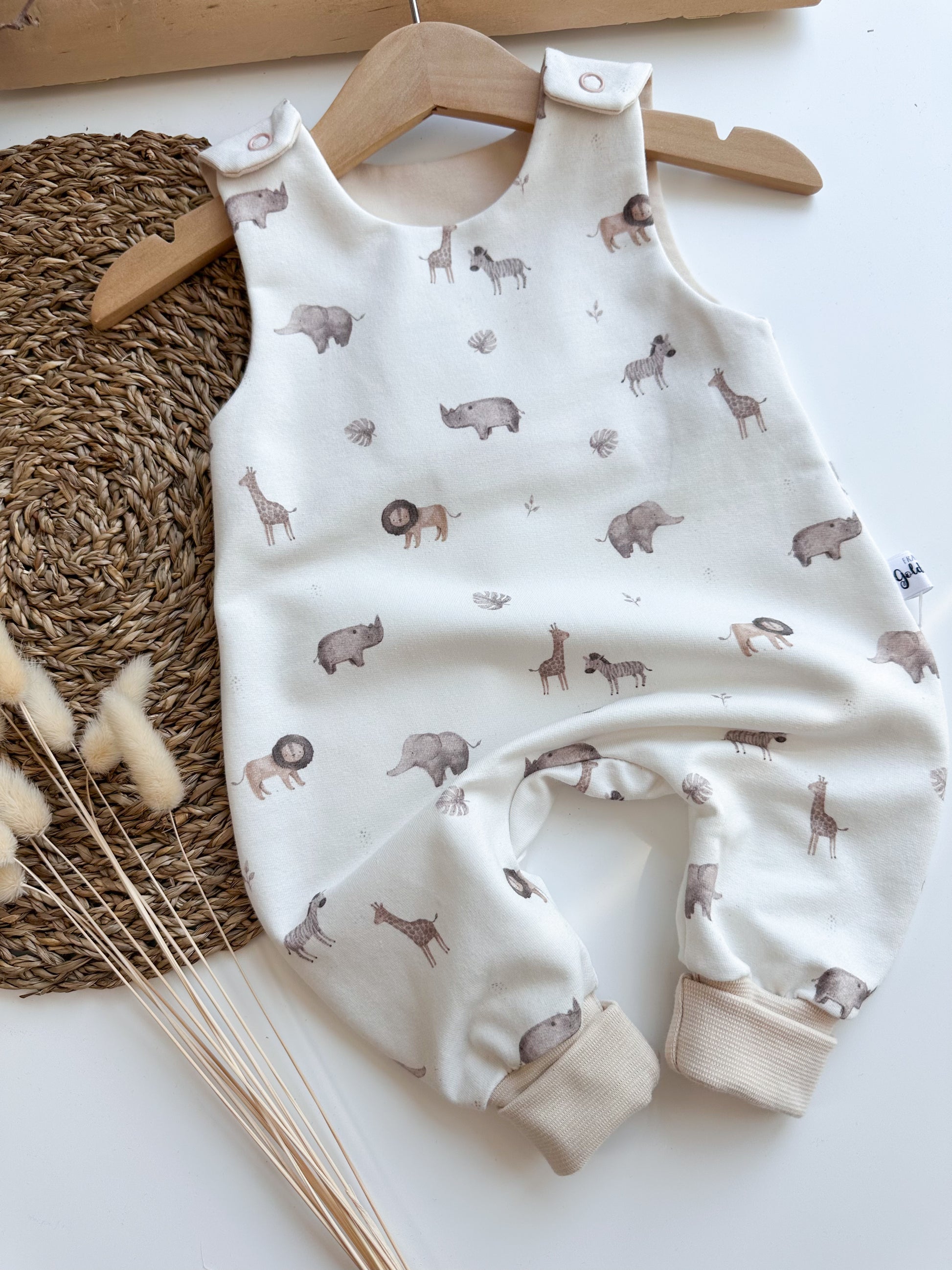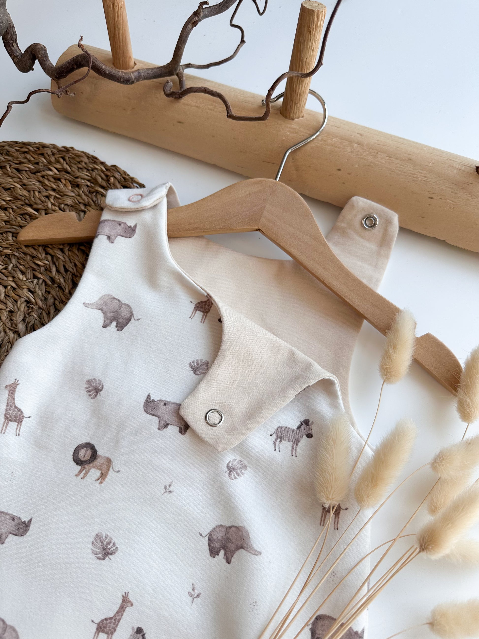 Süßer Strampler aus French Terry mit kleinen Safaritieren