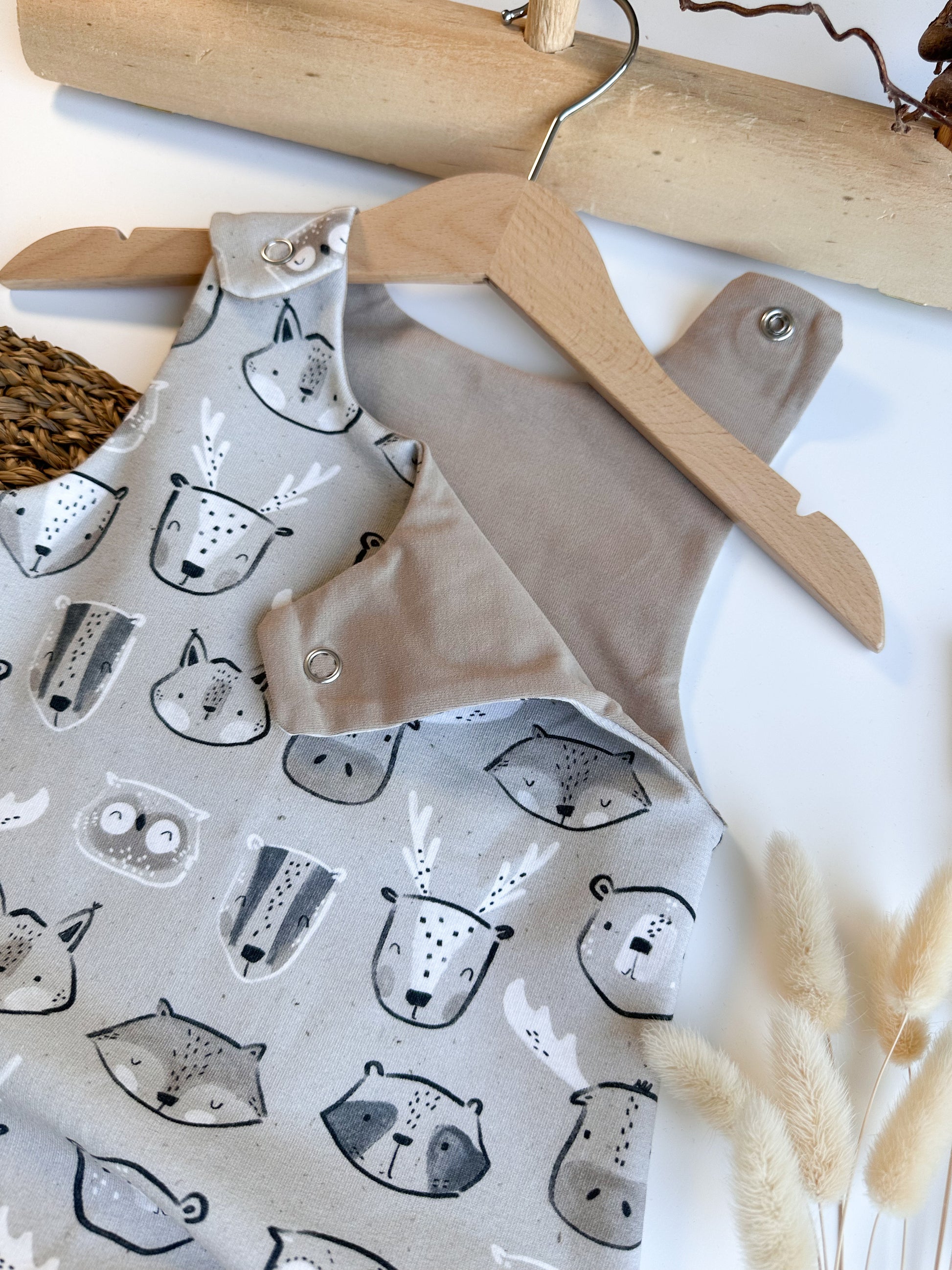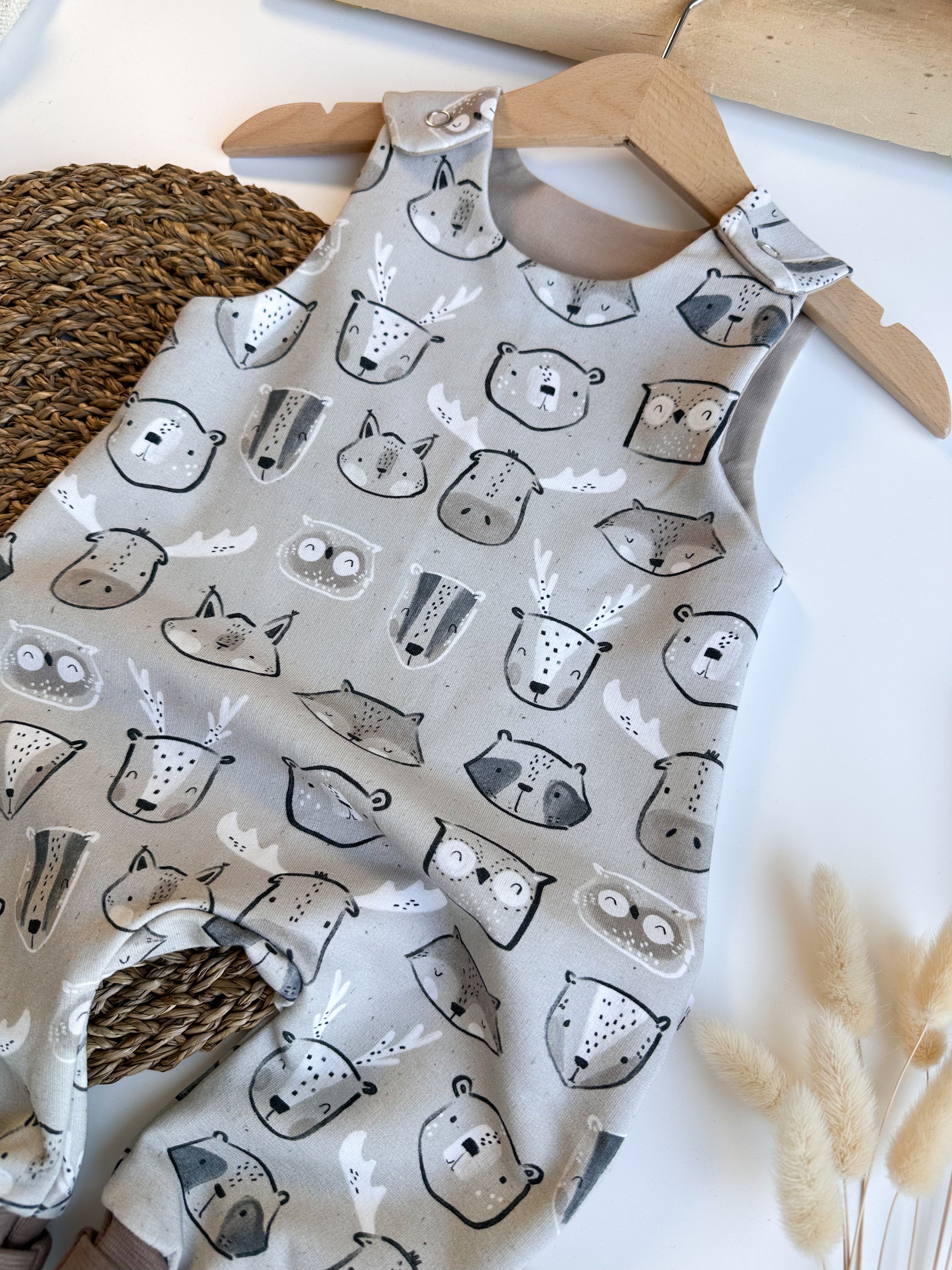 Süßer Strampler aus French Terry mit kleinen Tierköpfen
