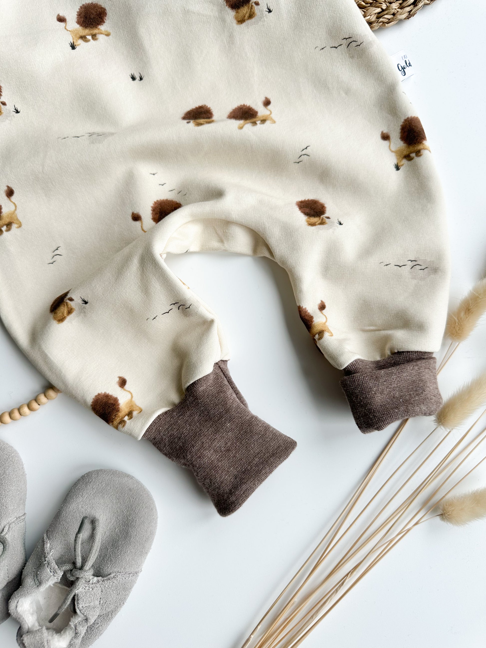 Süßer Strampler aus French Terry mit dem Löwen Theo