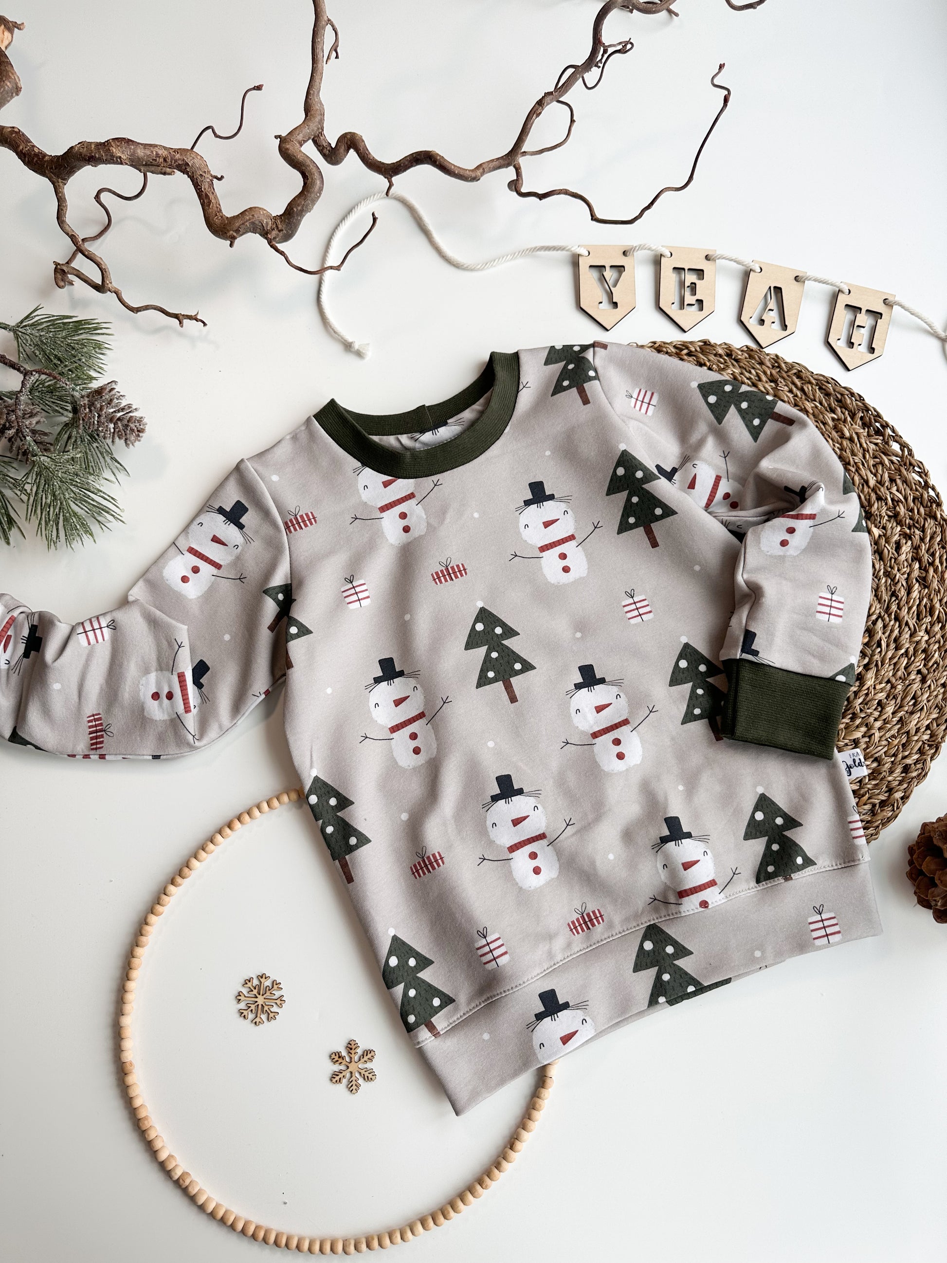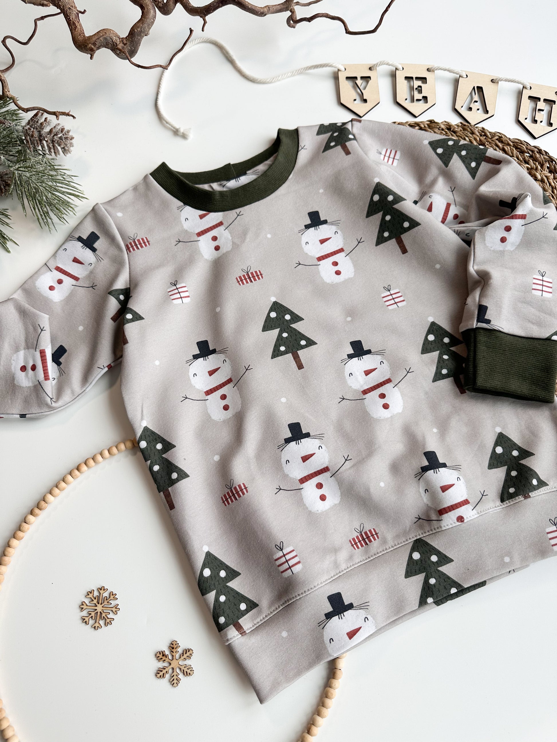Schöner Weihnachts-Pullover aus French Terry mit Schneemänner.