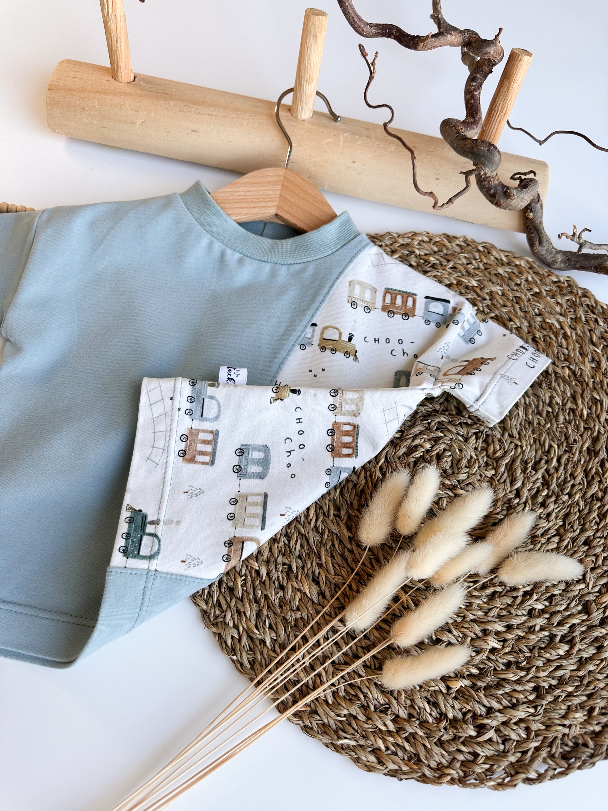 Lässiges oversized T-Shirt mit Eisenbahn und cooler Unterteilung