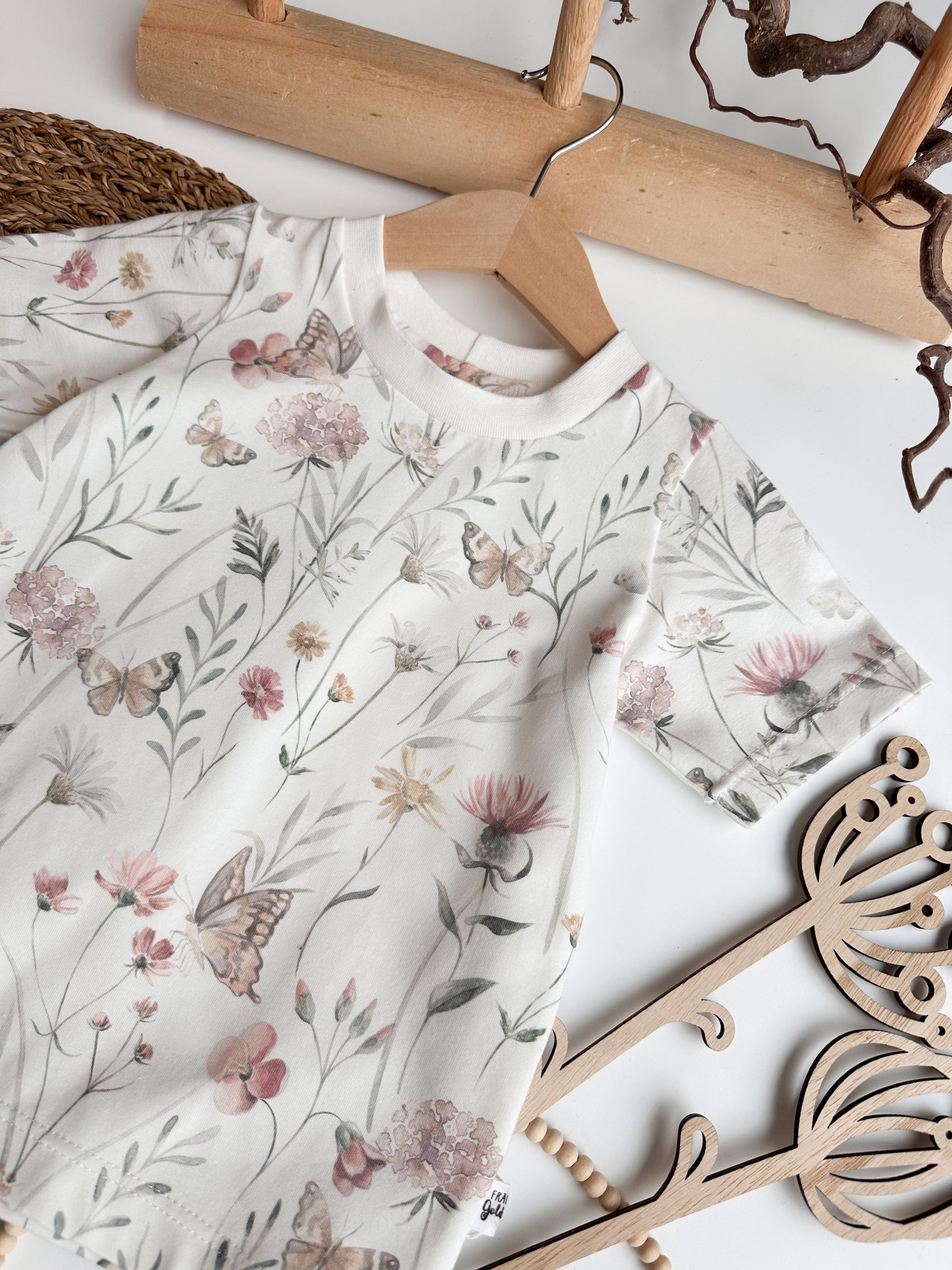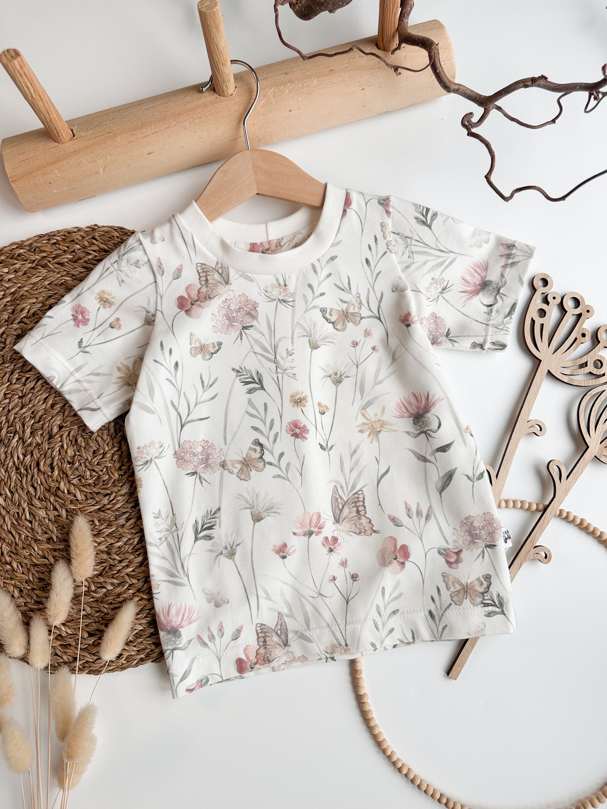 Süßes T-Shirt mit Blumen und Schmetterlinge