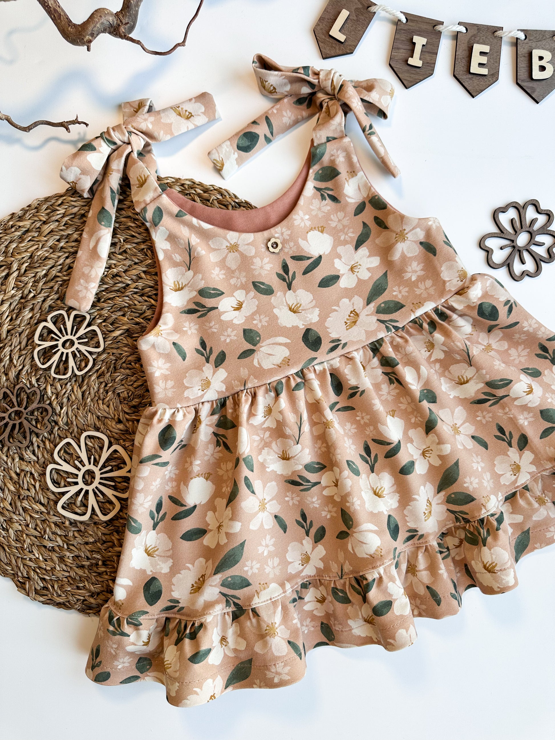 Träger sind zum binden. Kann auch im Herbst mit einem Langarmshirt und Leggings kombiniert werden.