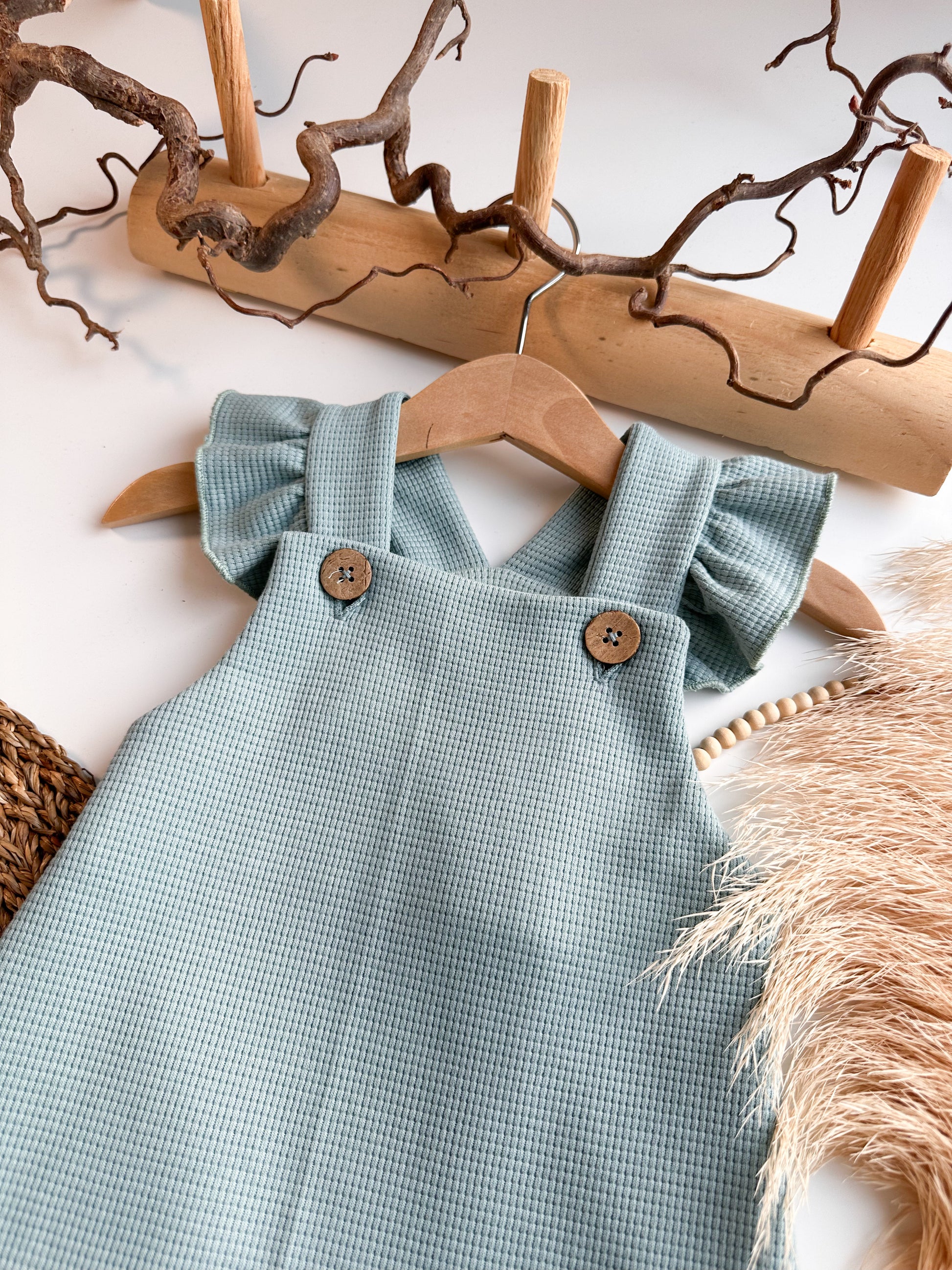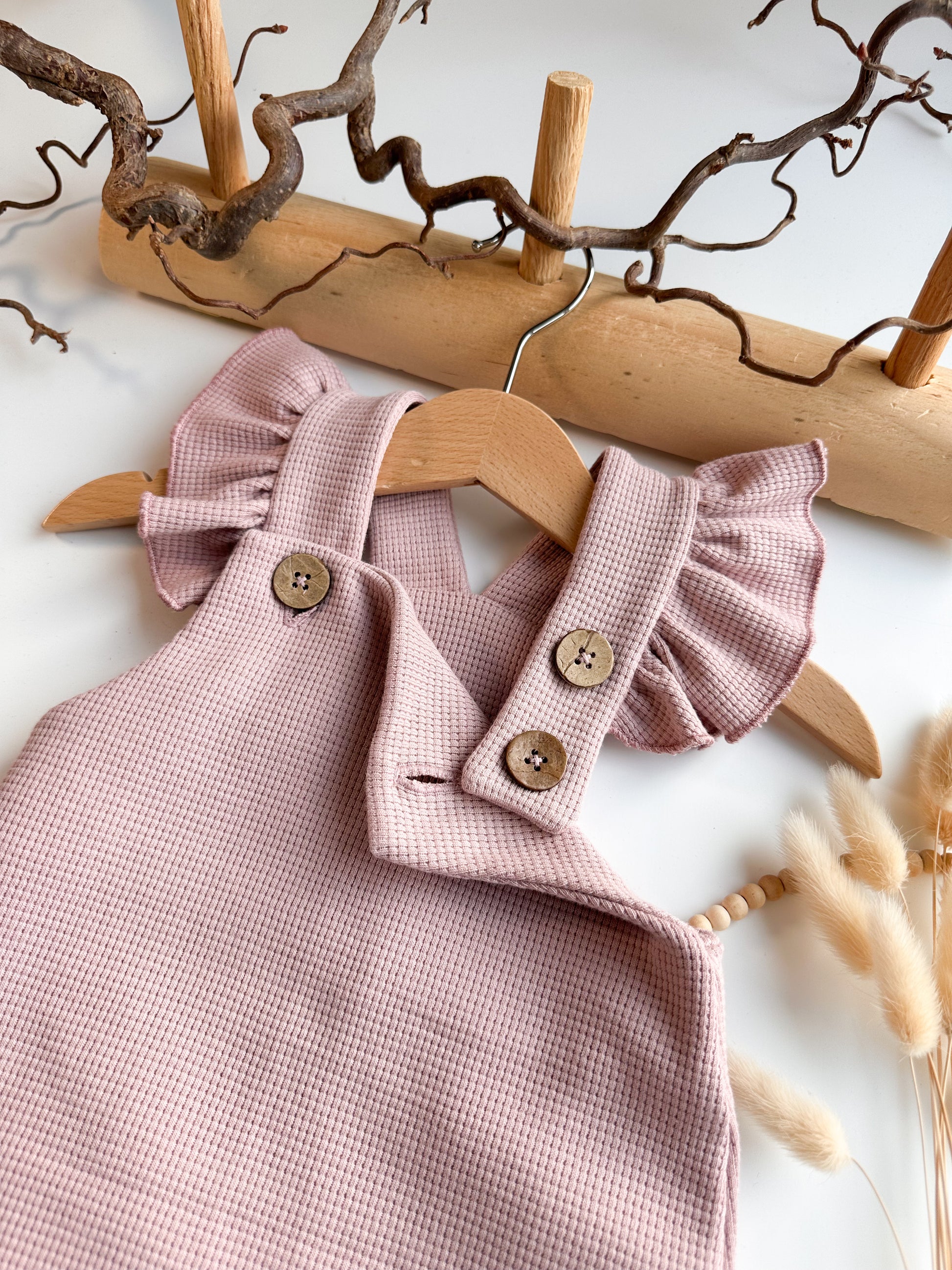 Alle Knöpfe am Kleidungsstück werden von mir ordnungsgemäß mit der Nähmaschine angenäht und verriegelt. Es kann trotzdem vorkommen, dass sich Knöpfe nach starker Belastung lösen. Dies stellt eine Verschluckungsgefahr dar sollte sich dein Kind diesen in den Mund stecken.