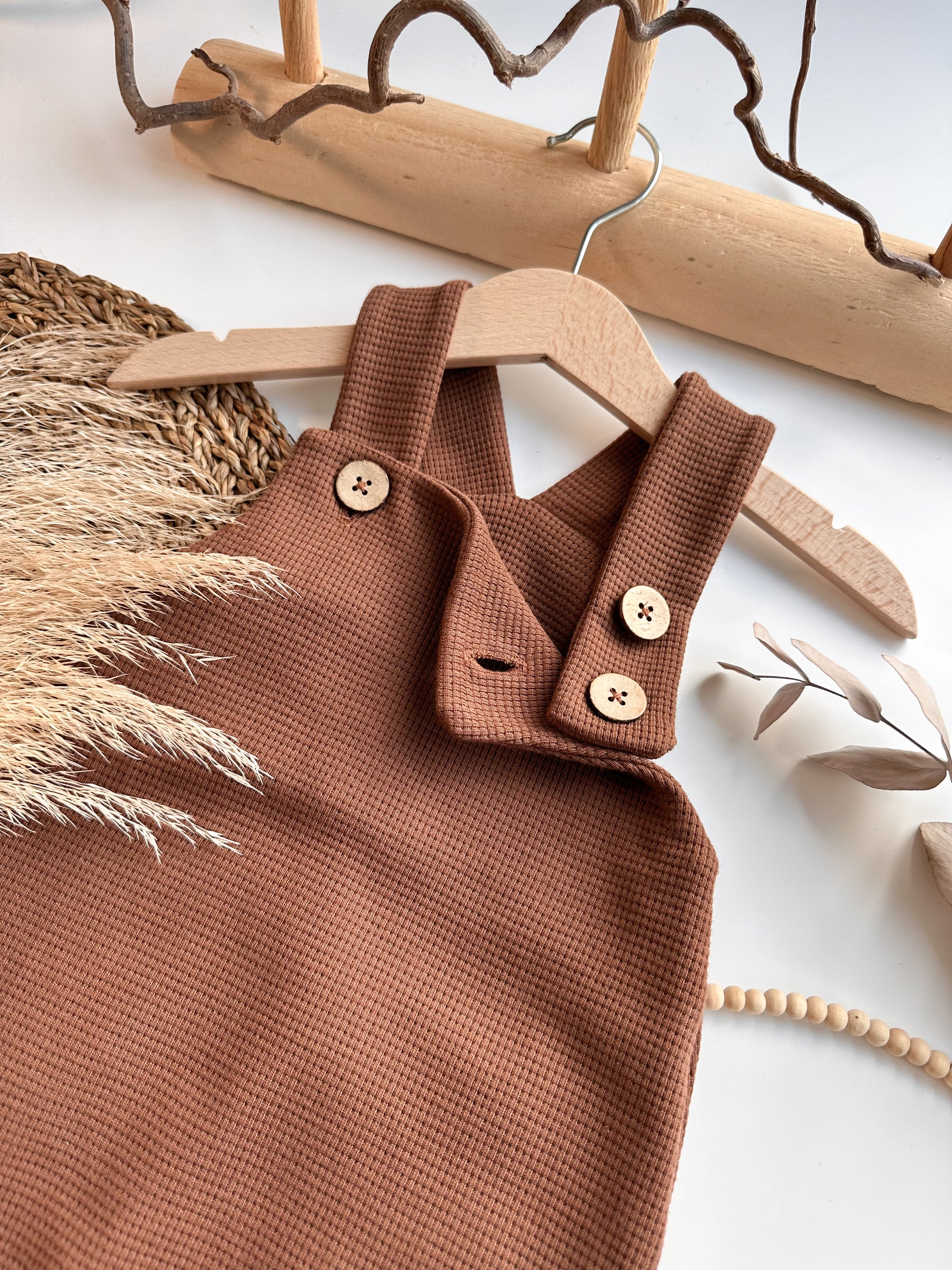 Alle Knöpfe am Kleidungsstück werden von mir ordnungsgemäß mit der Nähmaschine angenäht und verriegelt. Es kann trotzdem vorkommen, dass sich Knöpfe nach starker Belastung lösen. Dies stellt eine Verschluckungsgefahr dar sollte sich dein Kind diesen in den Mund stecken.